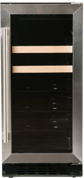 15 Inch Beverage Center with 3 cu. ft. Capacity, Glass Shelving, Wine Racks, Field Reversible Door, Digital Display Controls, Auto Defrost, Blue-LED Lighting, and ADA Compliant: Stainless SteelRead More