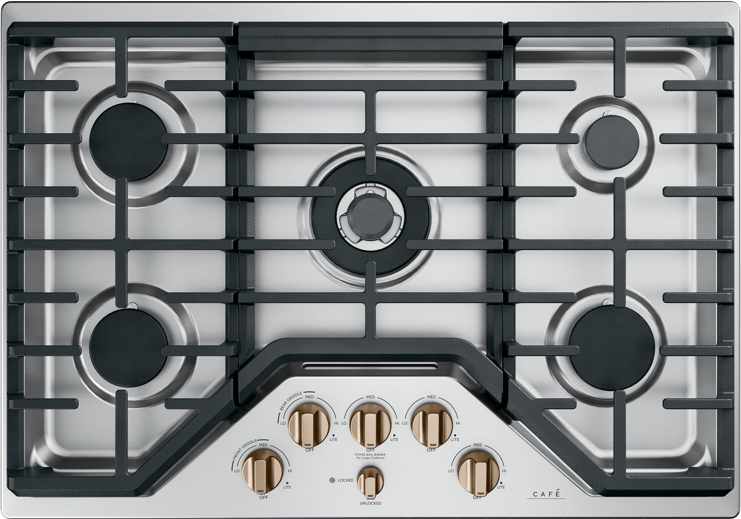 Sears and sautés are handled with ease on a 20,000 BTU Tri-Ring Burner, while the Extra-Large, Integrated cooktop Griddle offers up the perfect space for crab cakes and veggies. White LED Backlit Heavy Duty Knobs add a spark to your kitchen. Offering a large cooking surface with five sealed burners, including a convenient simmer burner, this versatile cooktop makes creating any size or type of meal easy.Read More