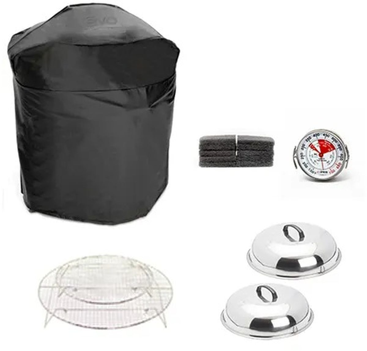 Essential Bundle Includes: Professional Wheeled Cart Vinyl Cover, 2 PC Cooking Covers, 2 PC Roasting Racks, Grill Thermometer, 10 Pack Cleaning Pads.Read More